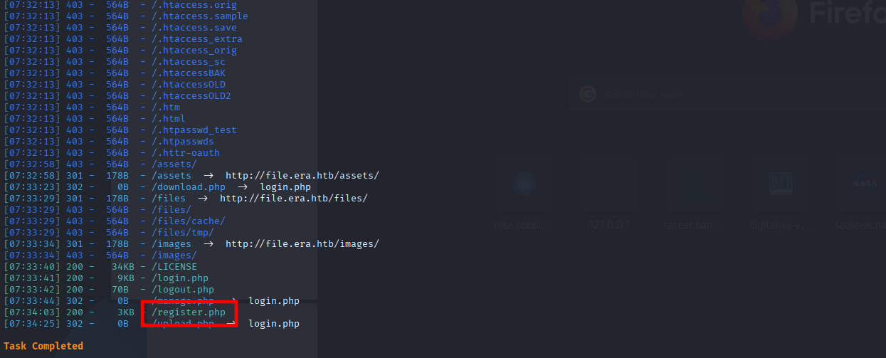 301 GET 7l 12w 178c http://era.htb/img => http://era.htb/img/