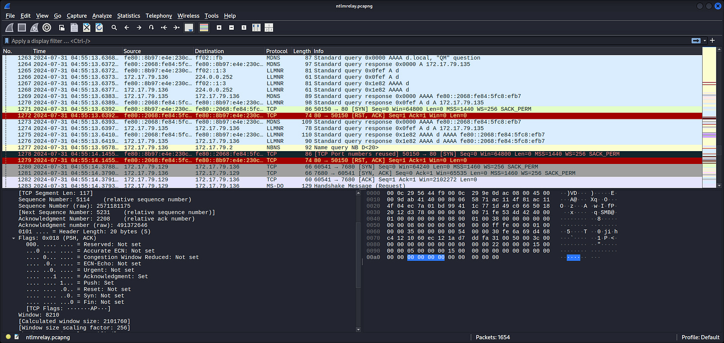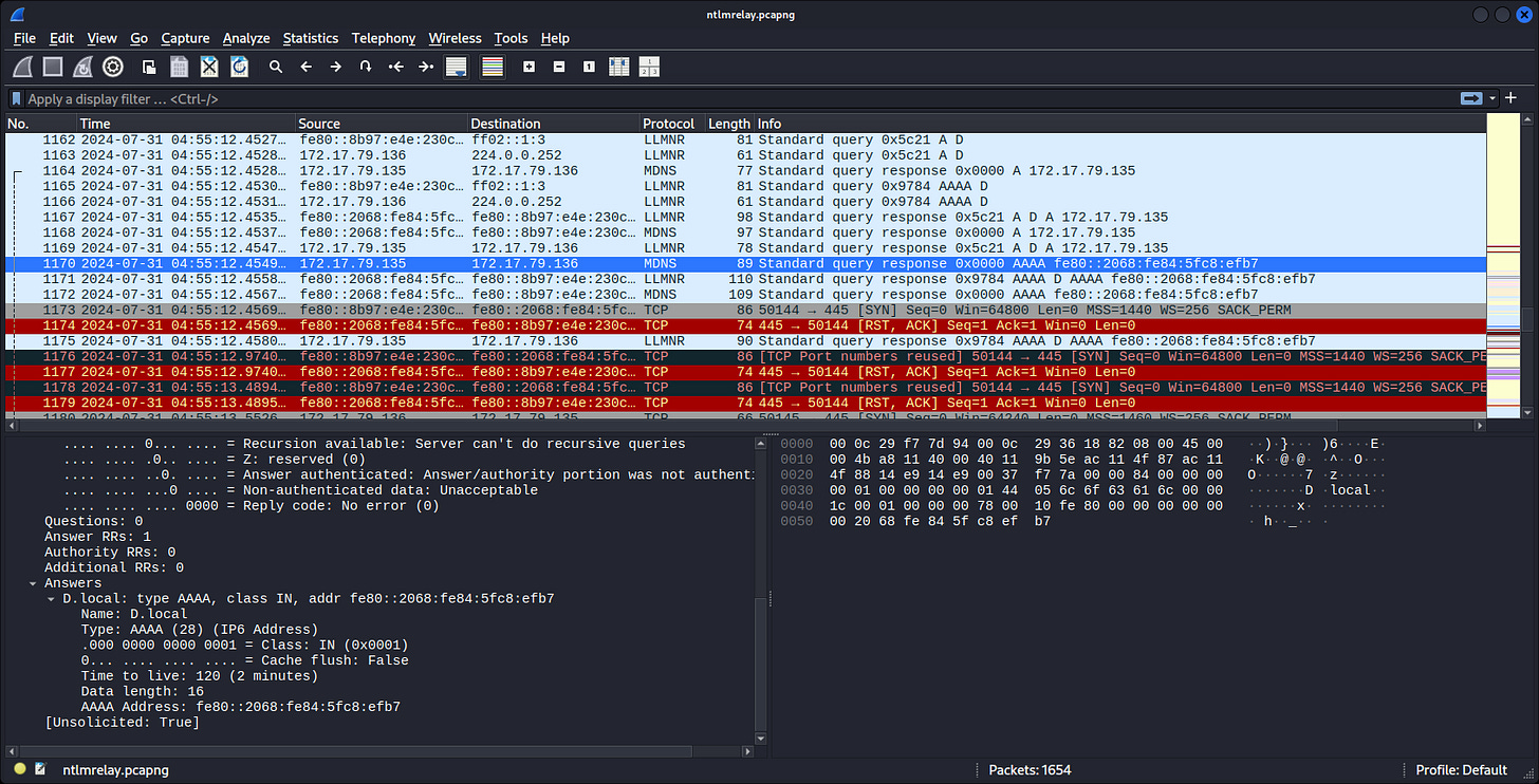 Investigate NTLM Relay attack, the attack starts by network poisoning on LLMNR response when a victim has a typo in the host in shares path. DFIR on given PCAP and Windows Security Log.