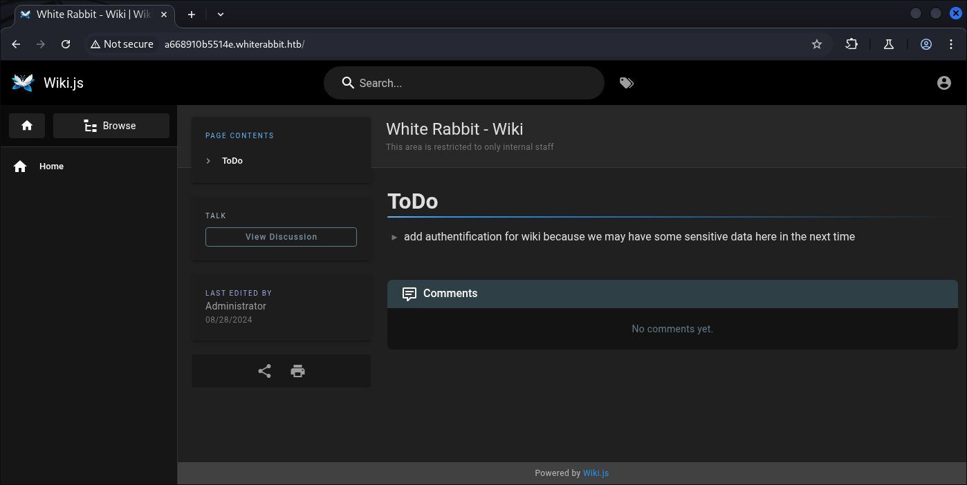 SHA256:zh37iNkj29XuW2GgQ8XaCpFX1SnzJ2RMsqq9Yj1hi1w root@whiterabbit.htb