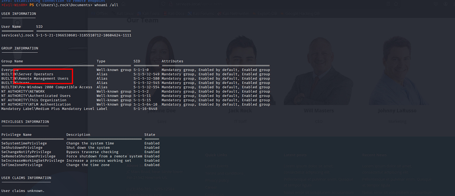 * (If J.Rock user have dead-end then we would perform BloodHound.)